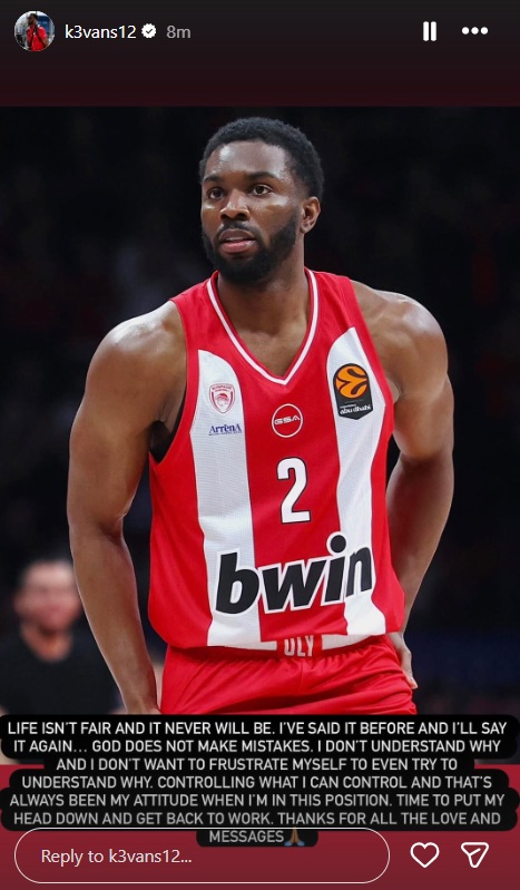 Περίπου ένα 24ωρο μετά τον νέο σοκαριστικό τραυματισμό του, ο Κίναν Έβανς βρήκε τη δύναμη και έκανε ανάρτηση στο Instagram για να ευχαριστήσει τον κόσμο για την αγάπη που του δείχνει. Ο εξαιρετικά άτυχος Αμερικανός γκαρντ τόνισε ακόμα πόσο άδικη είναι ζωή.