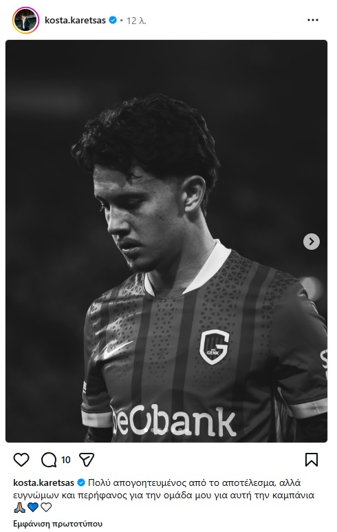 Η ανάρτηση του Καρέτσα μετά τον αποκλεισμό της Γκενκ από το Europa League.