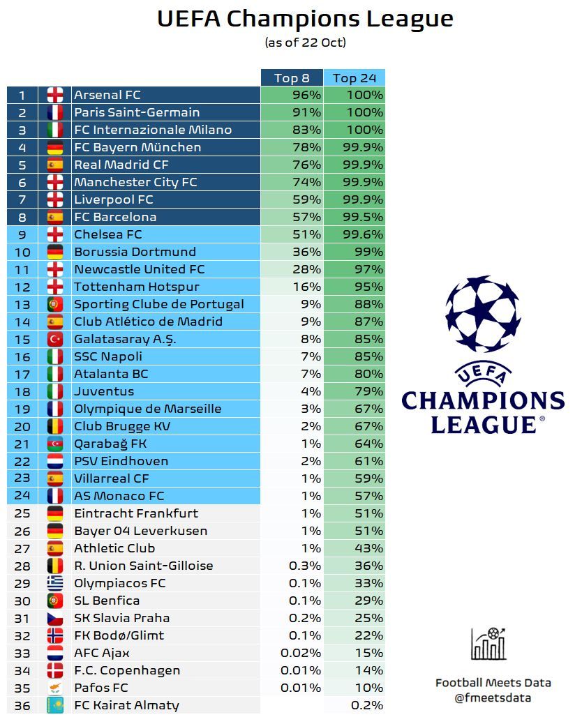 Η ομάδα του Χουάν Κάρλος Καρσέδο, αν και παρέμεινε αήττητη για δεύτερη συνεχόμενη εκτός έδρας αναμέτρηση σε αυτή τη φάση, είδε τις πιθανότητες πρόκρισης να υποχωρούν από το 16% στο 10%, με βάση τα δεδομένα που συνυπολογίζει ο αλγόριθμος. Παράλληλα, η Πάφος FC πήγε στη 29η θέση της συνολικής κατάταξης.