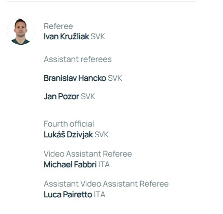 Από Σλοβακία ο ρεφ της αναμέτρησης (Ivan Kružliak), όπως και οι βοηθοί του. Από Ιταλία ο ΒΑΡίστας και ο βοηθός του. Για τον διαιτητή του αγώνα, το ματς της Πάφου θα είναι το 13ο του φετινό και 5ο στην Ευρώπη.