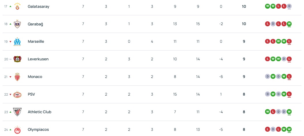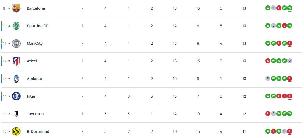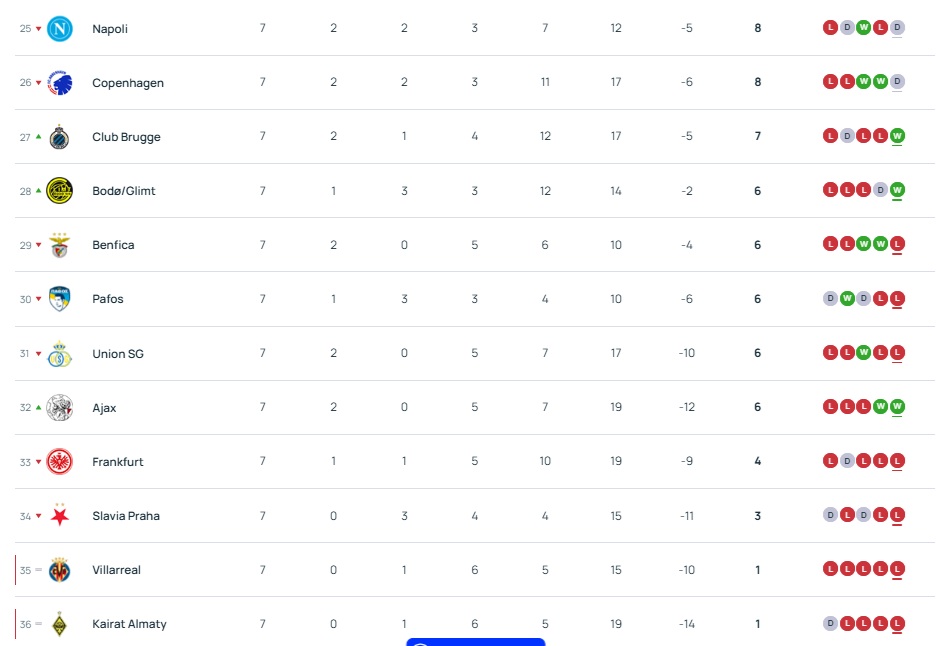 Η βαθμολογία της league phase του Champions League και πως αυτή διαμορφώθηκε μετά τα παιχνίδια της 7ης αγωνιστικής.