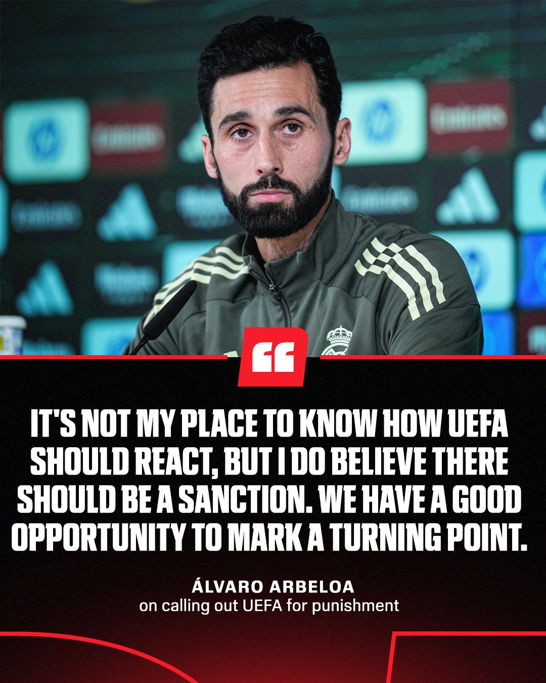 «Η αλήθεια είναι μία. Και θα σας την πω. Δεν ξέρω πως θα αντιδράσει η UEFA. Ποια θα είναι η επόμενη κίνησή της. Ωστόσο, τα δεδομένα είναι εδώ. Και είναι συγκεκριμένα. Θα μπορούσε από εδώ και πέρα να είναι ένα μεγάλο σημείο καμπής. Να συμβεί κάτι που δεν έχει γίνει ποτέ ξανά.