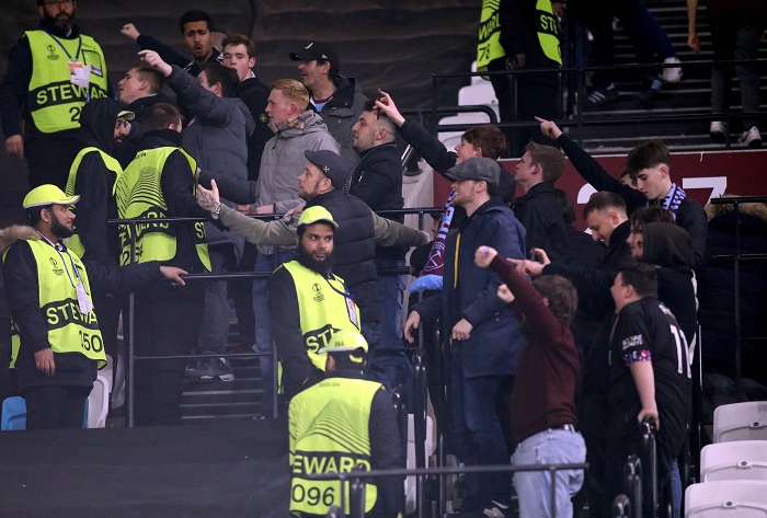 Προς το τέλος του πρώτου ημιχρόνου ανάμεσα σε Γουέστ Χαμ και ΑΕΚ παρατηρήθηκε ένταση ανάμεσα στους οπαδούς των δύο ομάδων.
