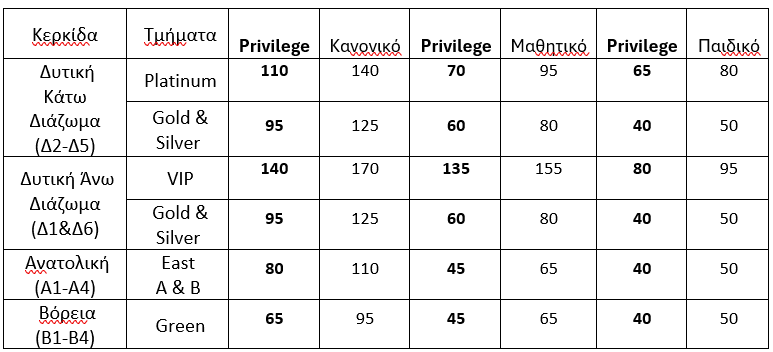 Οι τιμές των μεμονωμένων εισιτηρίων αγώνα
