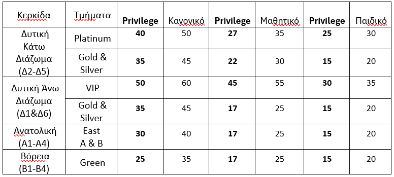 – Οι κάτοχοι Εισιτήρια Διαρκείας θαέχουν προτεραιότητα μέχρι τις 22/09για να αγοράσουν πακέτο εισιτηρίων στη θέση που βρίσκεται το Εισιτήριο Διαρκείας τους.