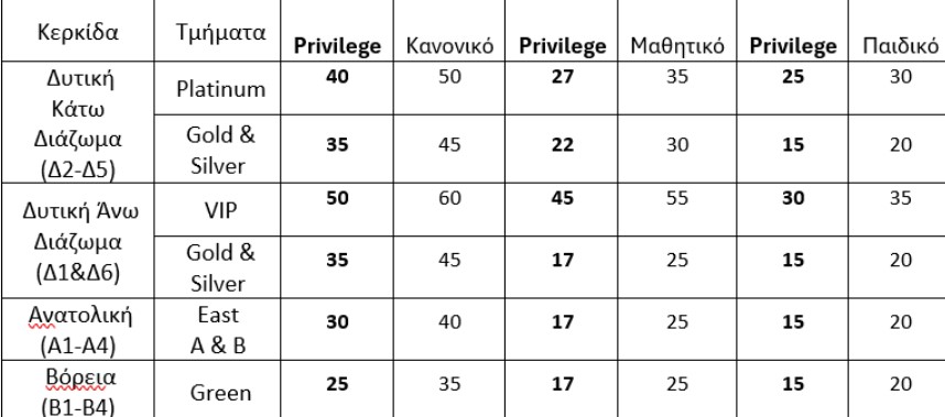 Παράλληλα, ο υπόλοιπος κόσμος μπορεί να προμηθευτεί το πακέτο του στις θέσεις που δεν είναι κρατημένες για τους κατόχους Εισιτηρίου Διαρκείας.