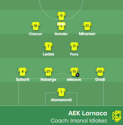 Ο Ιμανόλ Ιδιάκεθ επέλεξε τους έντεκα που θα ξεκινήσουν το ματς, στοχεύοντας σε μια σπουδαία εμφάνιση για την League Phase του Conference League για τη δεύτερη αγωνιστική του.