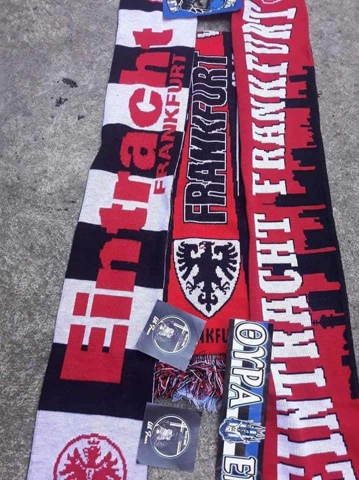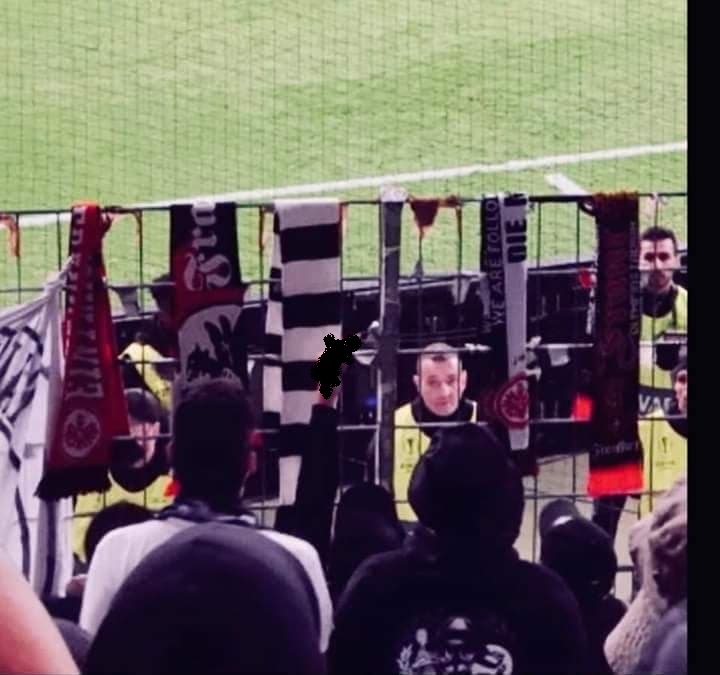 Κάποια από αυτά που κατέληξαν στα χέρια φίλων του Απόλλωνα κρεμάστηκαν μπροστά στην κερκίδα που τους φιλοξένησε στην Commerzbank Arena.
