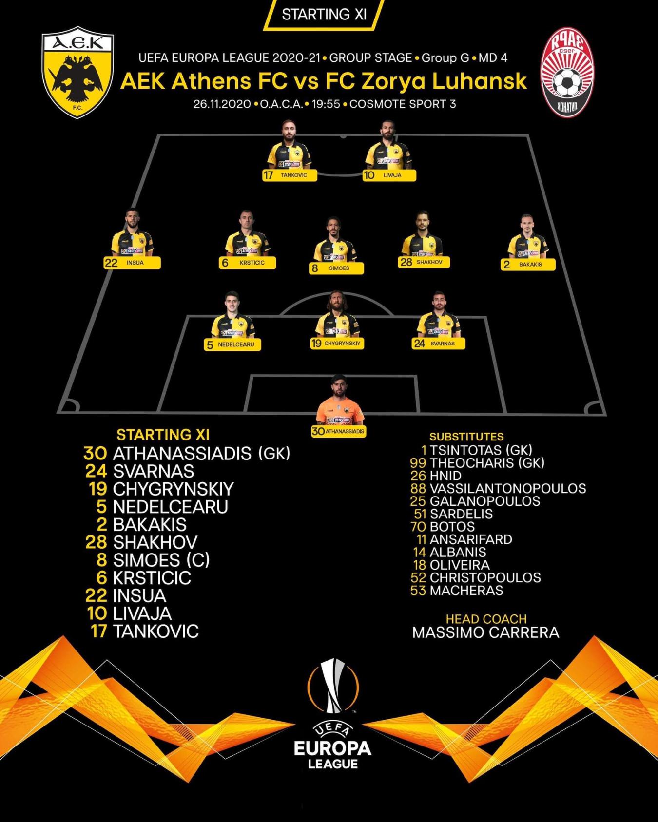 Αλλαγμένη στα πρόσωπα, αλλά με την ίδια συνταγή (όσον αφορά στο σύστημα) που είχε χρησιμοποιήσει στην Ουκρανία θ’ αντιμετωπίσει τη Ζόρια η ΑΕΚ.