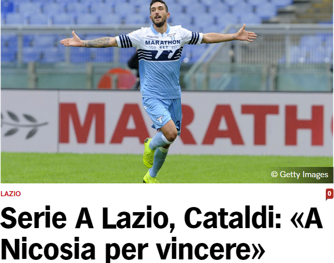 Δηλώσεις σε ΜΜΕ της Ιταλίας έκανε ο μέσος της Λάτσιο Ντανίλο Κατάλντι. Τόνισε ότι το κλίμα στα αποδυτήρια είναι πολύ καλό, αναφέρθηκε για το μεθαυριανό παιχνίδι με τον Απόλλωνα και την προοπτική η ομάδα του να κατακτήσει την 1η θέση προκειμένου να αποφύγει καλύτερες ομάδες.