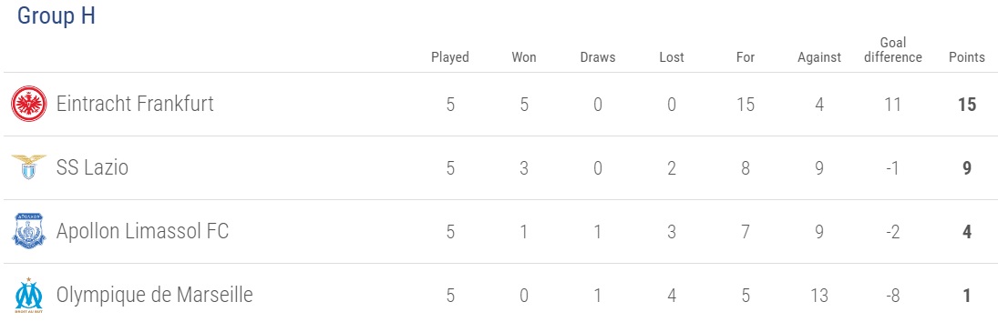 Καμιά από τις δύο ομάδες έχει πιθανότητες πρόκρισης αφού η Αίντραχτ Φρανκφούρτης και η Λάτσιο είναι οι ομάδες που τερματίζουν στις δύο πρώτες θέσεις του ομίλου. Ο αγώνας θα αρχίσει στις 19:55 και θα μεταδοθεί ζωντανά από τη Cytavision.