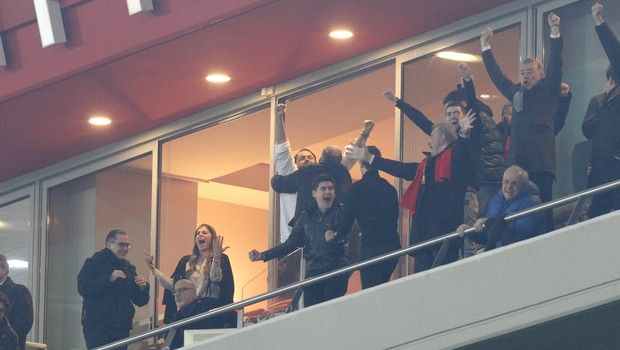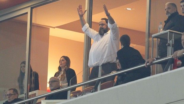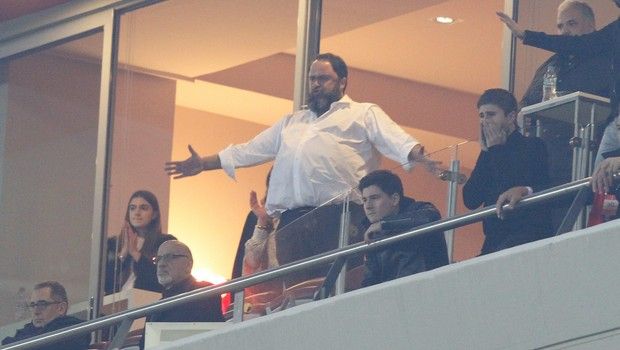 Ο θρίαμβος του Ολυμπιακού επί της Μίλαν ξεσήκωσε τον Βαγγέλη Μαρινάκη στα επίσημα του "Καραϊσκάκης". Χαρακτηριστικές οι αντιδράσεις του στις πιο κάτω φωτογραφίες.