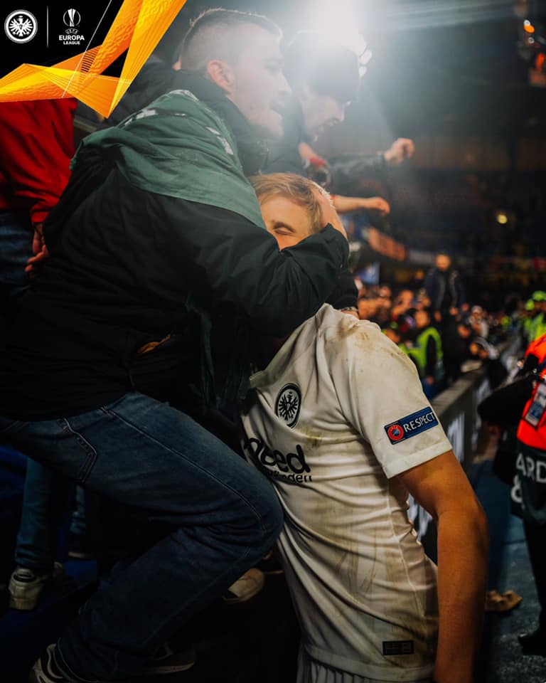 Μαζί με τους παίκτες που πήγαν μπροστά τους για να τους χειροκροτήσουν και να αναγνωρίσουν τη στήριξή τους, οι στιγμές που εκτυλίχθηκαν ήταν γι' ακόμα μια φορά συγκλονιστικές από πλευράς συλλόγου της Φρανκφούρτης.