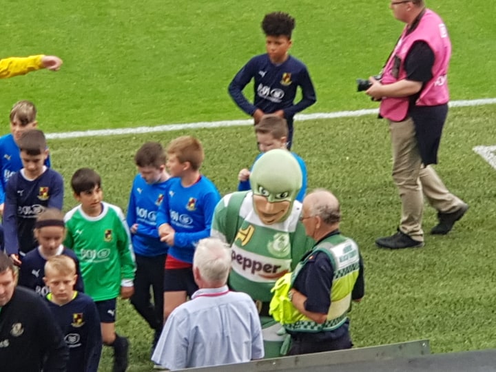Η μασκότ των Ιρλανδών με το που έκανε την εμφάνιση της στον αγωνιστικό χώρο τράβηξε τα βλέμματα και αποθεώθηκε από όσους βρίσκονταν εκεί.