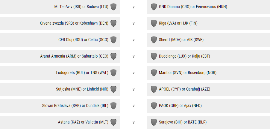 FCSB (ROU) or Mladá Boleslav (CZE)-Ventspils (LVA) or Vitória SC (POR)