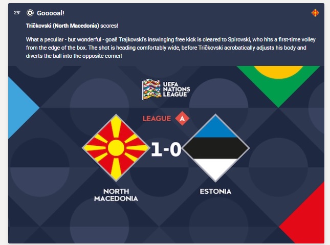 Ο Ιβάν Τρισκόφσκι της ΑΕΚ άνοιξε το σκορ στο σημερινό εντός έδρας παιχνίδι της Εθνικής Σκοπίων με την τελευταία του ομίλου Εσθονία.