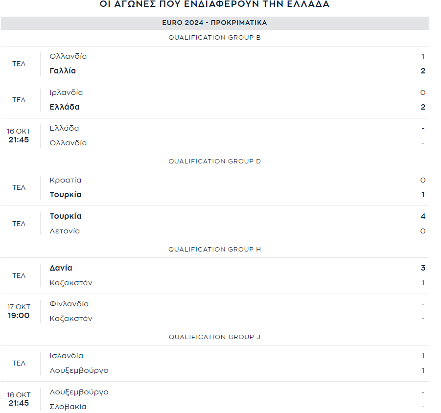 Μία άλλη ομάδα που ενδιέφερε την Ελλάδα ήταν η Τουρκία. Οι Τούρκοι επικράτησαν 4-0 της Λετονίας, είναι στην κορυφή στο +6 από Ουαλία και Κροατία και εξασφάλισαν το εισιτήριο για το Euro 2024.