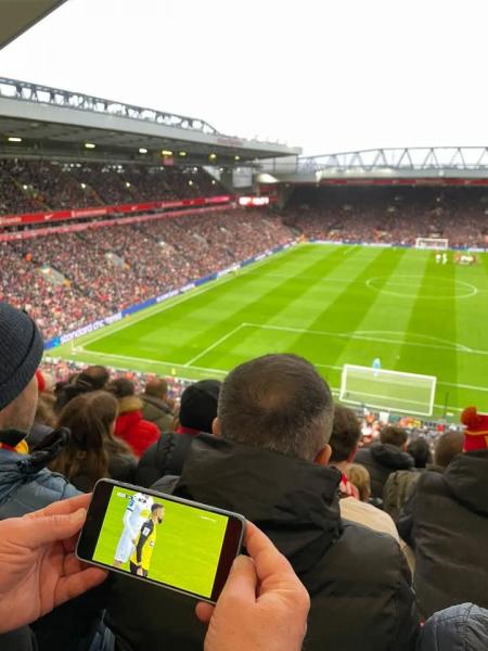 Αντί να βλέπει τη ματσάρα στο Άνφιλντ, οπαδός της ΑΕΚ μέσα από γήπεδο έβλεπε το ΑΕΚ-Λαμία στο κινητό του.