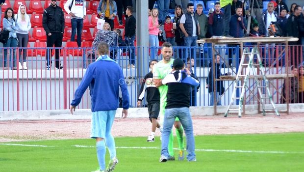 Σύμφωνα με το goalpost.gr, ένας οπαδός των γηπεδούχων μπήκε στον αγωνιστικό χώρο, πλησίασε τον Αποστολίδη και του αφαίρεσε το περιβραχιόνιο του αρχηγού της ομάδας.
