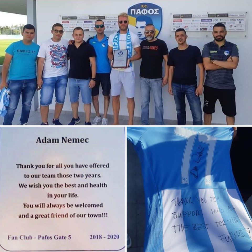 Ο Άνταμ Νέμετς αποχαιρέτησε την Πάφος Fc και ο σύνδεμος φιλάθλων της ομάδας τον ευχαρίστηκε και τον αποχαιρέτησε τιμώντας τον με πλακέτα.