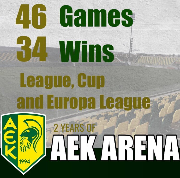 Δυο χρόνια λειτουργία κλείνει σήμερα η ΑΕΚ Αρένα και η ΑΕΚ δημοσίευσε φωτογραφία με τα παιχνίδια που έπαιξε και τις νίκες που έκανε.