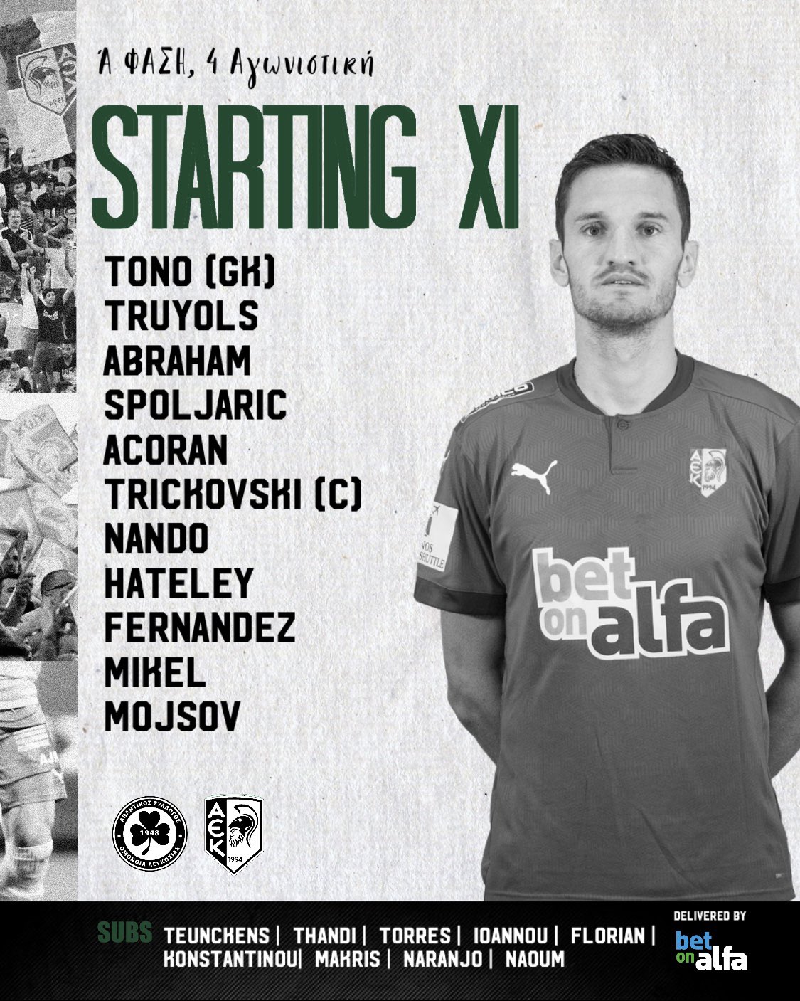 Δείτε την εντεκάδα της ΑΕΚ για το ντέρμπι με την Ομόνοια στο ΓΣΠ για την 4η αγωνιστική του πρωταθλήματος.