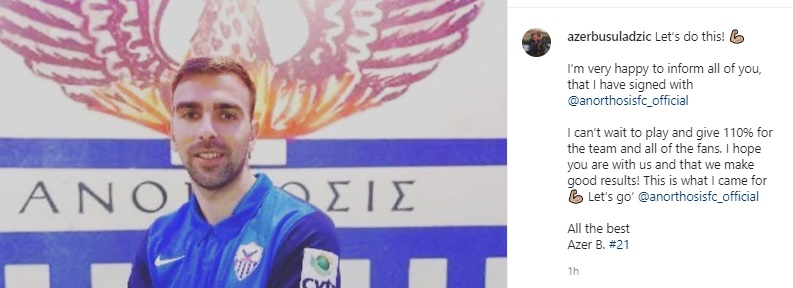 Το πρώτο του μήνυμα ως ποδοσφαιριστής της Ανόρθωσης, έστειλε πριν από λίγο ο Αζερ Μπουσουλάτζτς.