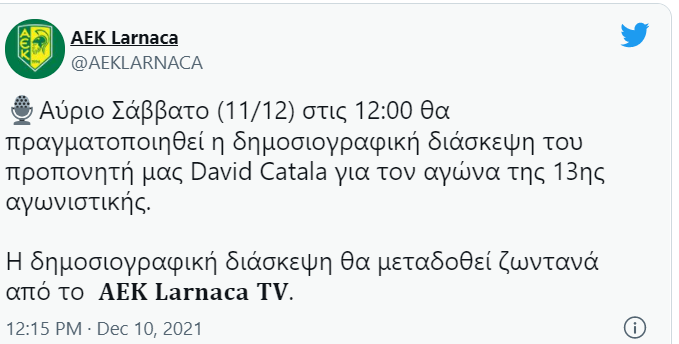 Η διάσκεψη του Καταλά ενόψει Ομόνοιας (pic) Α' ΚΑΤΗΓΟΡΙΑ ΜΠΛΑ ΜΠΛΑΣ ΑΕΚ 10.12.202112:39 Ο προπονητής της ΑΕΚ, Νταβίντ Καταλά, αύριο Σάββατο 11/12 στις 12:00 θα μιλήσει ενόψει Ομόνοιας. Αναλυτικά: srs.png