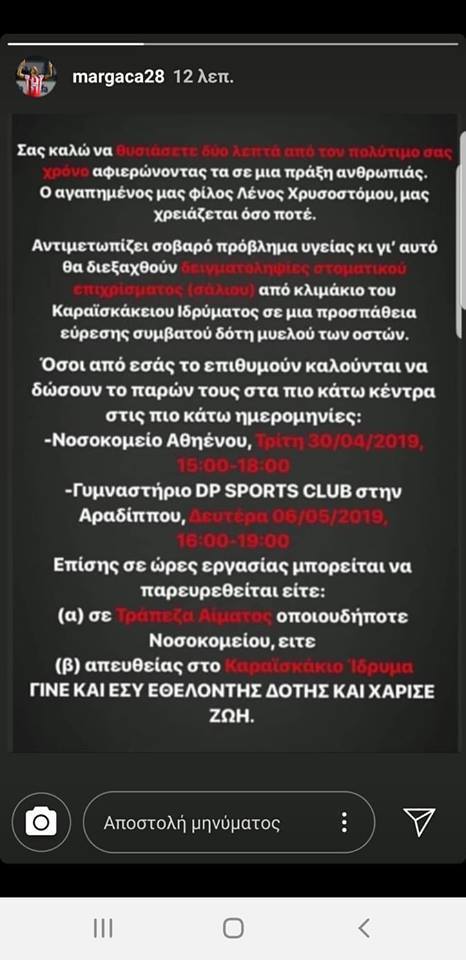 Αυτή τη φορά, ο Κυπριοποιημένος άσος της Νέας Σαλαμίνας με ανάρτηση του στα social media απευθύνει έκκληση για βοήθεια καθώς ο Λένος Χρυσοστόμου μας χρειάζεται όλους κοντά του. Δείτε το ποστάρισμα με όλες τις πληροφορίες.