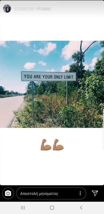 Ο παίκτης των κιτρινοπρασίνων της Λάρνακας φωτογράφησε μια ταμπέλα η οποία πάνω έγραφε ‘’Το μόνο όριο είσαι εσύ’’ και έδειξε πως πιστεύει στον εαυτό του και θέλει να δουλέψει σκληρά.