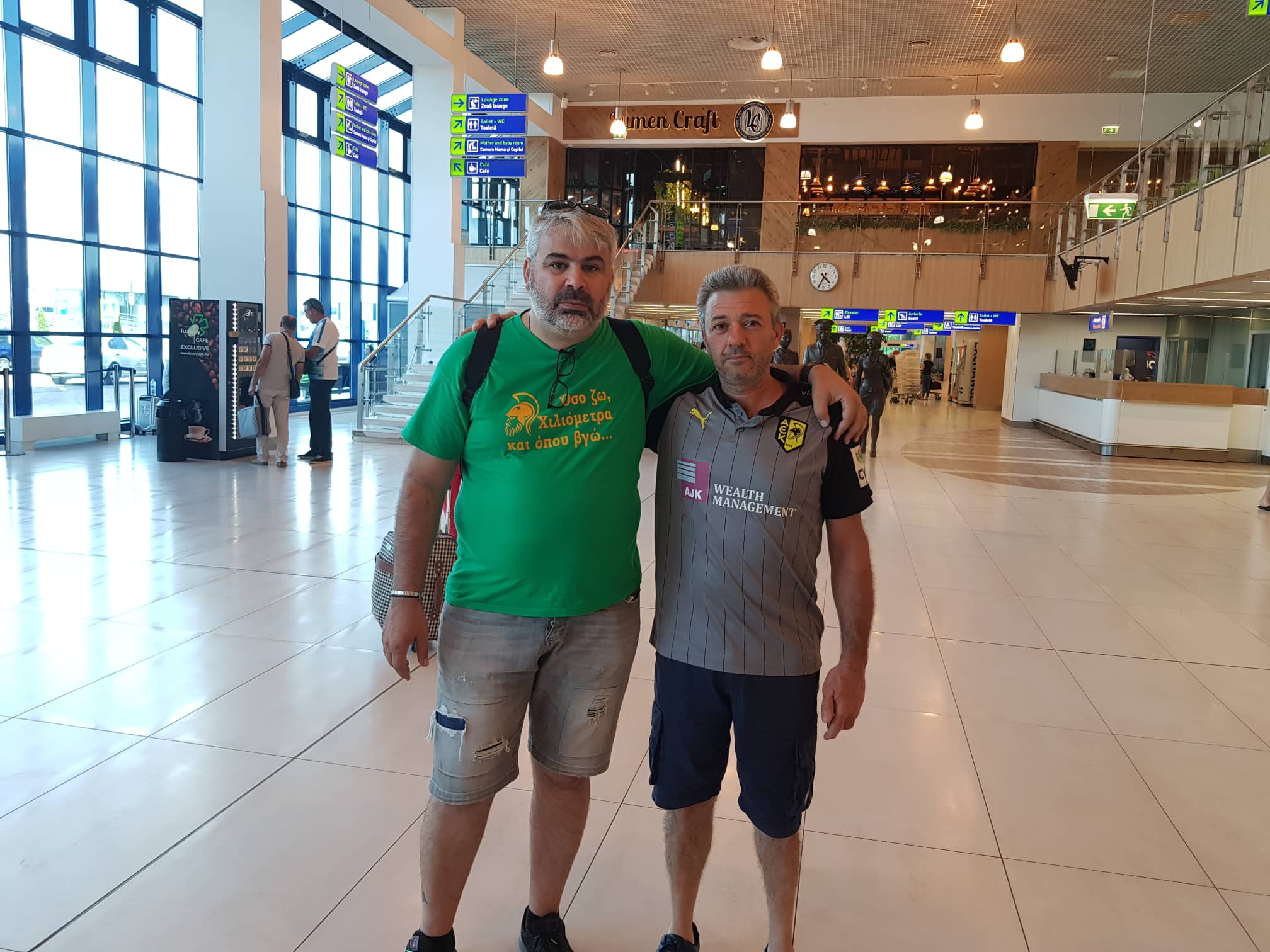 Ο Πανίκος και ο Μιχάλης, πόζαραν στη κάμερα του Sportime. Πρόκειται για δυο πιστούς φίλους της ΑΕΚ που ακολουθούν παντού την ομάδα τους.