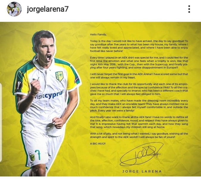 Διαβάστε πως ο Χόρχε Λαρένα αποχαιρετά μετά από 5 χρόνια την ΑΕΚ, τον κόσμο της και την διοίκηση.