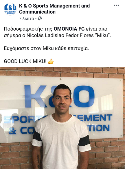 Το γραφείο που εκπροσωπεί τον Μίκου στην Κύπρο, πρόλαβε την Ομόνοια, ανακοινώνοντας με κάθε επισημότητα τη μεταγραφή του Βενεζουελάνου φορ στο "τριφύλλι".