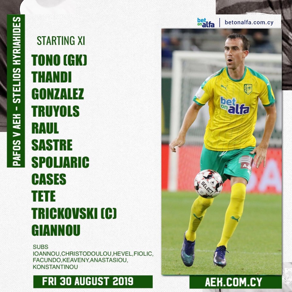 Πρεμιέρα σήμερα για την ΑΕΚ στο πρωτάθλημα, με τον Ιμανόλ Ιδιάκεθ να παρατάσσει την πιο κάτω 11άδα για τον πρώτο εκτός έδρας αγώνα με την Πάφο.