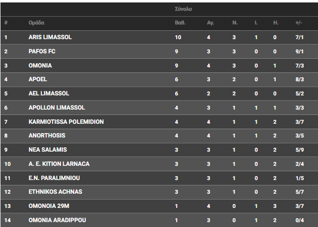 Στο άλλο παιχνίδι που έγινε στη Λεμεσό, Άρης και Απόλλωνας έμειναν στο ισόπαλο 0-0. Στους 10 βαθμούς πήγε η ομάδα του Σπιλέφσκι, που είχε τις πρώτες απώλειες ενώ οι γαλάζιοι έφτασαν τους 4 βαθμούς και εκκρεμεί ο αγώνας με την ΑΕΛ που δεν άρχισε ποτέ για την 3η αγωνιστική.