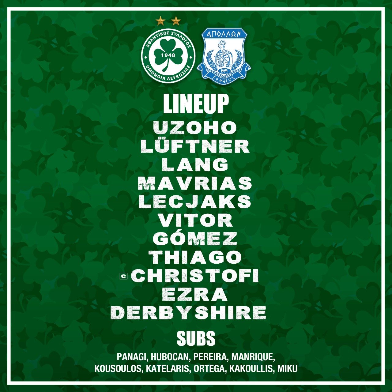 Χωρίς τον Γιάννη Κούσουλο στην εντεκάδα σήμερα η Ομόνοια για τον αγώνα με τον Απόλλωνα.