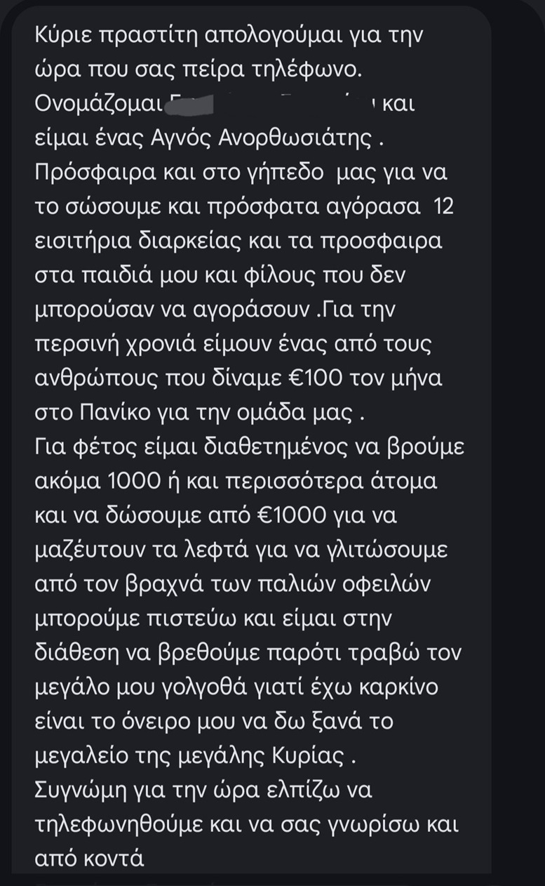 Μερικά λεπτά αργότερα έρχεται μήνυμα. Το διαβάζω και όσο έφτανα στο τέλος αντιλαμβάνομαι για ακόμα μια φορά το μέγεθος της ευθύνης να είσαι Πρόεδρος αυτού του Συλλόγου.