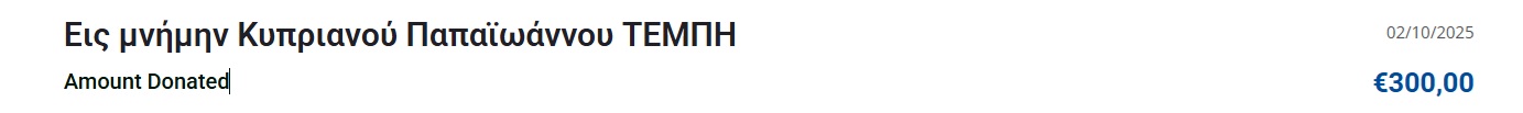 Συγκινητική πράξη και σήμερα στην πλατφόρμα οικονομικής ενίσχυσης για σωτηρία της Ανόρθωσης. Εις μνήμην του Κυπριανού Παπαϊωάννου που έχασε τη ζωή του στην τραγωδία των Τεμπών, κατατέθηκε το ποσό των 300 ευρώ. Στο 22% του στόχου και στις 421 χιλιάδες το ποσό που μαζεύτηκε μέχρι στιγμής για την επόμενη μέρα στην «Κυρία».