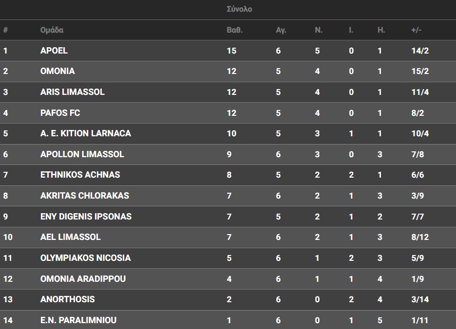 ΒΑΘΜΟΛΟΓΙΑ: Ανάσες για ΑΕΛ και Απόλλωνα - συνεχίζει να βουλιάζει η Ανόρθωση