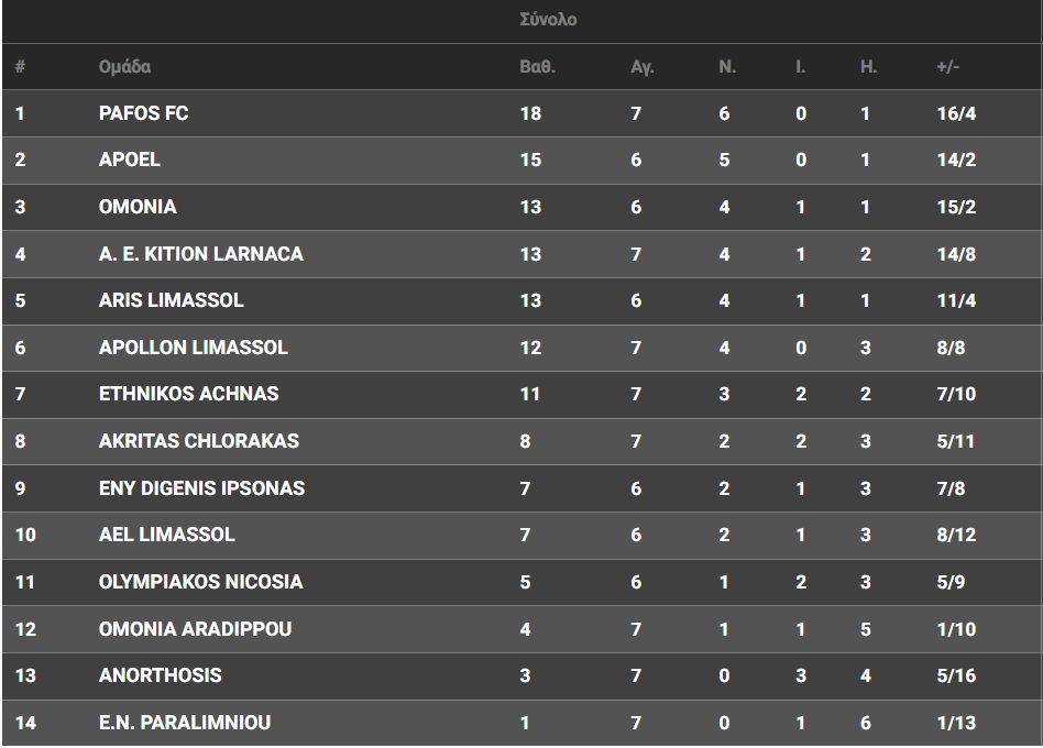19:00 Ομόνοια Λευκωσίας – Πάφος FC
