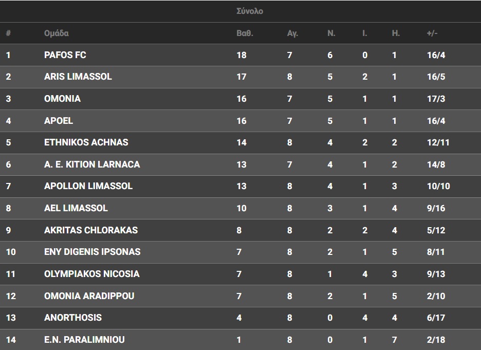 19:00 Πάφος FC – ΑΕΛ Λεμεσού