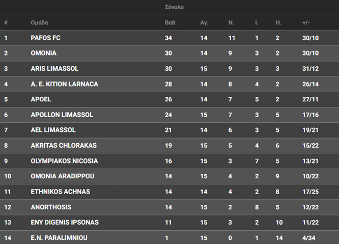 19:00 Απόλλων Λεμεσού – Πάφος FC