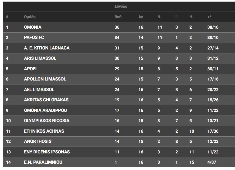 Στο «Δασάκι», η ΑΕΛ πήρε ένα σπουδαίο «διπλό» επί του Εθνικού με 0-1, αποτέλεσμα που τη διατηρεί γερά στη διεκδίκηση μιας θέσης στην εξάδα και βάζει δύσκολα στους γηπεδούχους, που γνώρισαν μία ήττα που δεν ήθελαν καθόλου. Την ίδια ώρα, ο ΑΠΟΕΛ ήταν άνετος (3-0) κόντρα στην ΕΝΠ μέσα στο ΓΣΠ, ενώ η Ομόνοια πέρασε εκκωφαντικά (0-4) από το «Στέλιος Κυριακίδης», εκεί όπου διέλυσε τον Ακρίτα και έπιασε κορυφή.