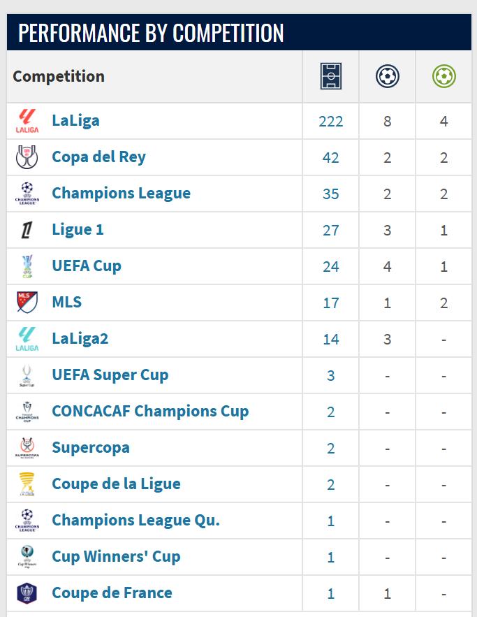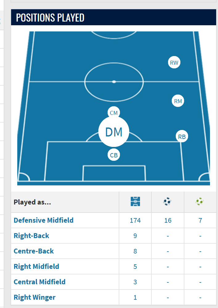 Οι θέσεις στις οποίες αγωνίστηκε ως βασικός: