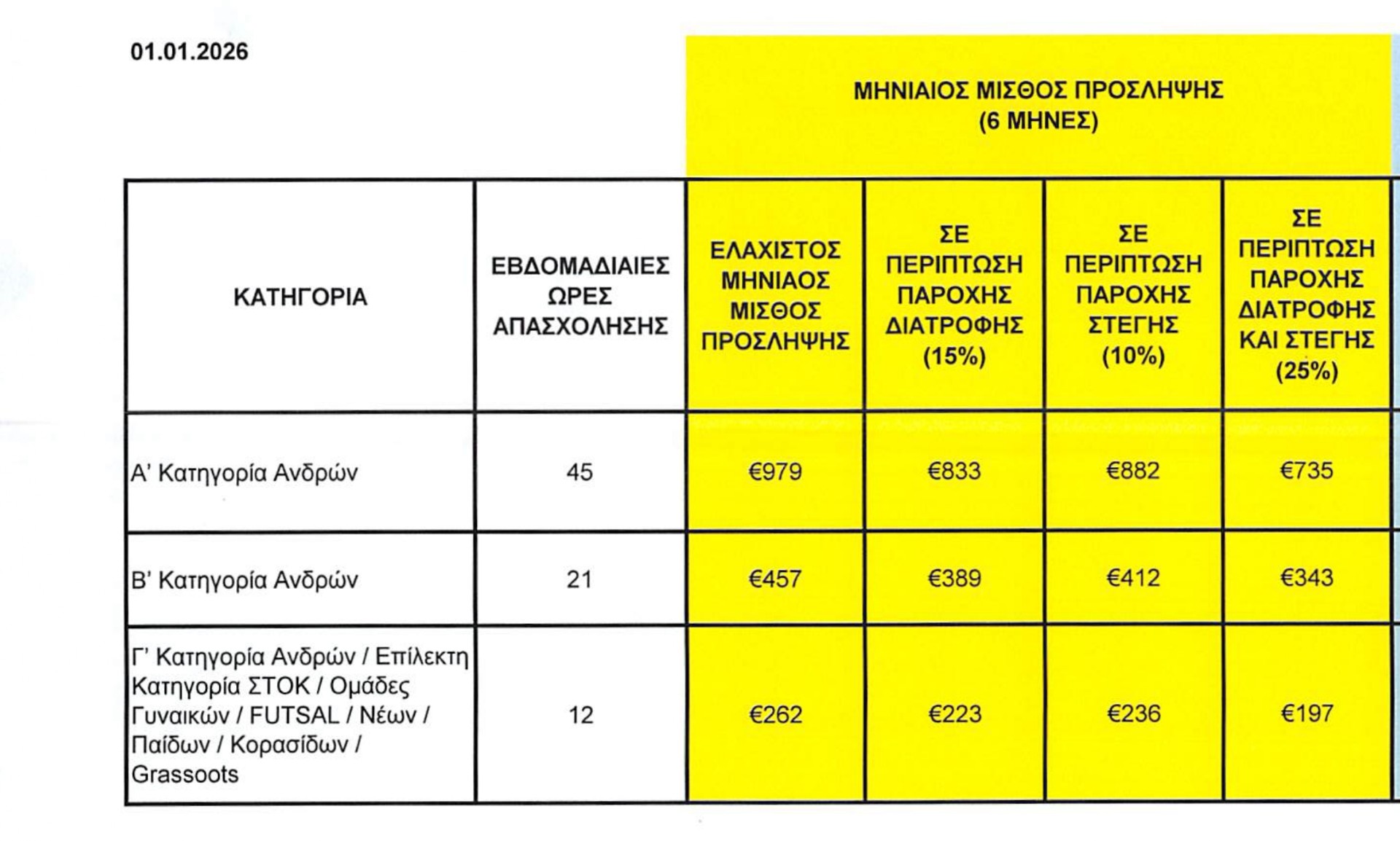 Την Πολιτεία να διασφαλίσει την πλήρη εφαρμογή του κατώτατου μισθού σε όλους ανεξαιρέτως τους επαγγελματίες ποδοσφαιριστές και ποδοσφαιρίστριες, χωρίς διακρίσεις.