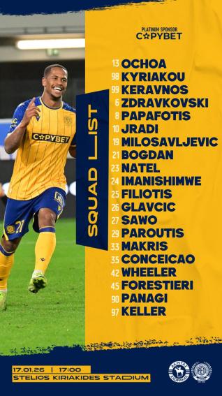 Οι «λέοντες ενημέρωσαν πως, εκτός αποστολής για τη «μάχη» είναι οι: Σινγκ, Στεφάνοβιτς, Φεριέρ, Ουεντραόγκο, Νεοφύτου, Φραντζής, Ζόκε (οίδημα στην ποδοκνημική).
