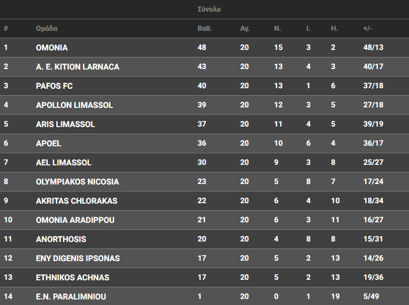 19:00 Πάφος FC-Ομόνοια