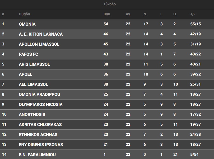 17:00 ΑΠΟΕΛ – Ομόνοια Λευκωσίας