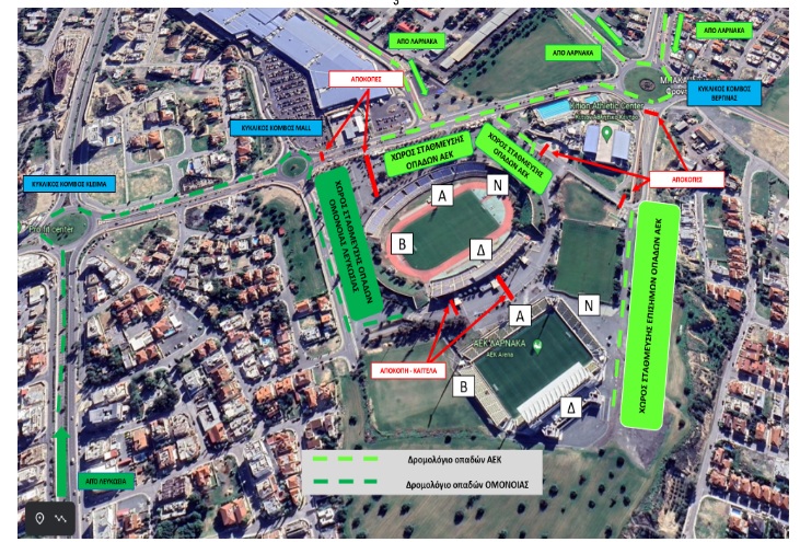 Ο χώρος στάθμευσης για τους φιλάθλους μας θα είναι βόρεια, πίσω από το στάδιο ΓΣΖ, όπως εμφανίζεται στο σχετικό σχεδιάγραμμα της Αστυνομίας: