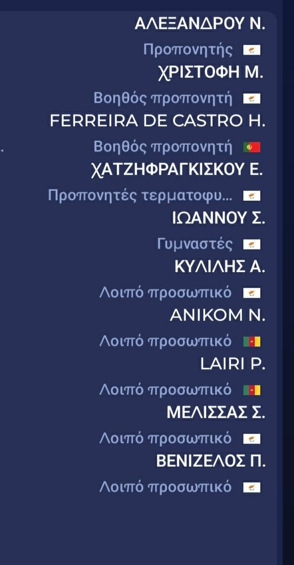 Στο φύλλο αγώνα αναγράφεται το όνομα του Νεκτάριου Αλεξάνδρου ως προπονητή και βοηθός θα είναι ο Έλντερ Κάστρο.
